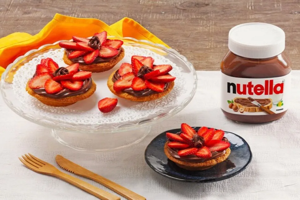 После выпечки дайте тартам немного остыть. С помощью кондитерского мешка выложите сверху немного Nutella®. Украсьте свежей клубникой и посыпьте сахарной пудрой перед подачей.