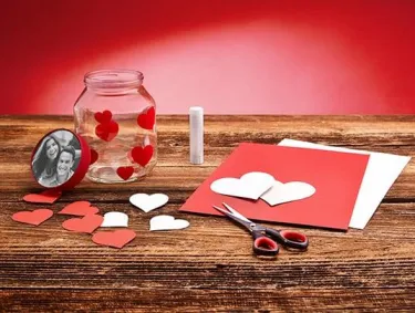 Напишите небольшие послания на вырезанных сердечках, сложите их и положите в банку.
