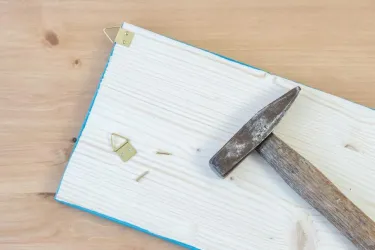 Используйте молоток, чтобы закрепить два настенных крепления на доске.