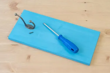 Прикрутите крючок посередине доски. Отступите 4 см от верхнего края доски. Отметьте середину доски и прикрутите крючок на расстоянии 4 см от верхнего края.