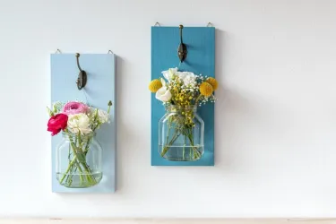 Повесьте вашу банку на крючок и закрепите ваш висячий сад на стене при помощи гвоздей. Заполните его весенними цветами. Все готово!
